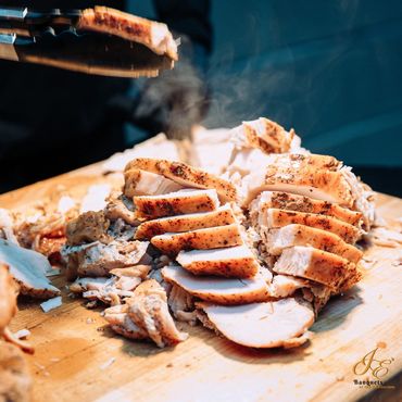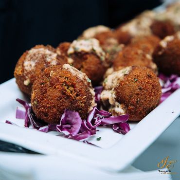 At JE Banquets, we believe that food is more than just sustenance - it's an experience. That's why we are passionate about creating unique, flavorful dishes that delight the senses and leave a lasting impression on our clients and their guests. Ideal location for Intimate events, Seating for 80 guests plated, Seating for 60 guest or less for social events.